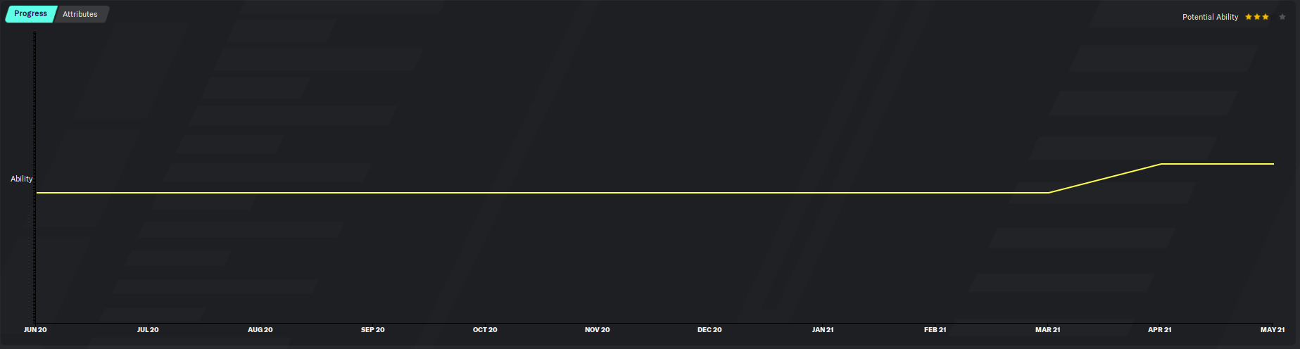 Our former case study Skelly Alvero is one of the examples of being a victim of this problem. The now 19-year old striker has only played one game this season, and his development stalled because of this. He was only able to improve his composure by one point. The rest of his attributes are still the same as at the end of the first season! I hope to improve this going forward with the added leagues.