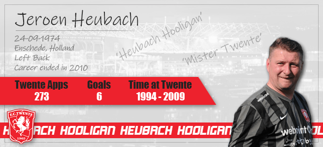 Jeroen Heubach was born on the 24th of September 1974 in the former textile city of Enschede. Heubach inherited his character from his father, who was a hard-working construction worker. It was his personality that got him where he wanted to be as a youngster; a professional footballer. The Twente supporters love the implacable left-back because of his local origin, his love for the club and always leading the fight.