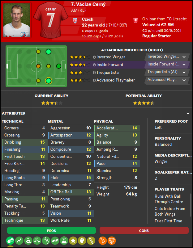 Cerný is an excellent dribbler with flair and pace and I’m willing to give him the freedom that he needs!