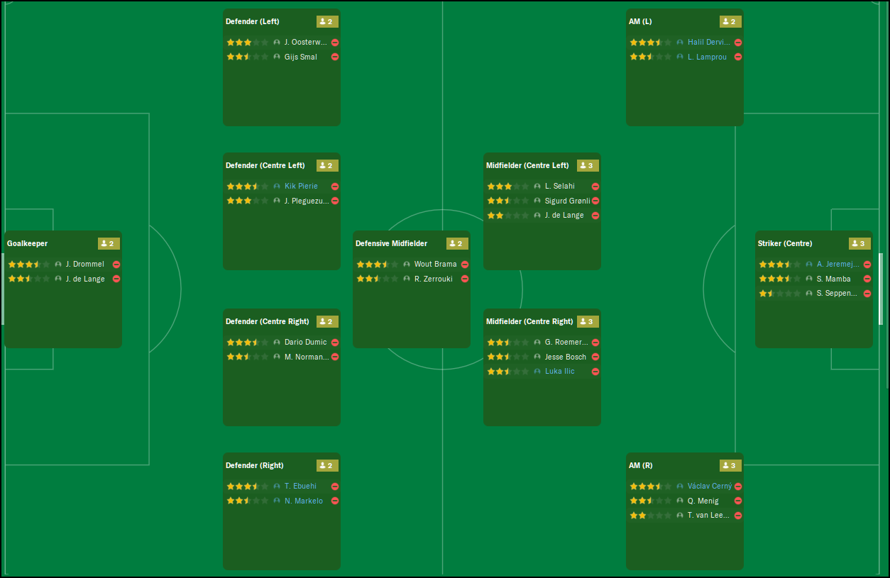 As you can see, there is a big challenge lying ahead of us. If we take the eight best players from our roster, something stands out. Five of them are playing for us on loan, so we will most likely lose them at the end of the season. Also, Wout Brama is one of them, who won’t be able to play all the matches for us due to his stamina, age and injury susceptibility. Brama will probably decline over the season and only be a stand-in next season. Worrying.