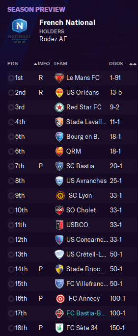 So after all of the transfer business, and after the pre season, it was time for the media to do a season preview of the Championnat National. So as you can see the media and the analists don’t expect big things from Andrea and his boys. It’s up to them now to suprise them all.