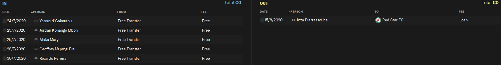 So after the loans of Barbet and Umbdenstock were terminated, and Diarrassouba was of the wage bill, there was room to get in a few free transfers in. The first players to come in were the two right full backs. N’Gakouto will be the first choice right back from now on, and Mbon comes in as his back up. After these two signings every position in the squad was taking, so now it was just a matter, of making the squad a little bigger, and jump in when there was a big opportunity on the market. Mujangi Bia was one of these opportunities. The Belgian winger will come in as a attacking left midfielder. Pereira will come in as a attacking midfielder. Raoul will be the back up striker, and Mary comes in as an extra back up in the center of the defense.